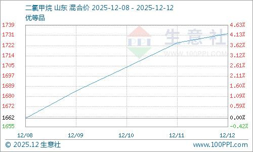 近期二氯甲烷行情上行。 虽行业开工率高,但山东部分装置降负,企业稳价意愿增强。下游制冷剂等行业刚需采购,适度补货。叠加主流企业上调出厂价,推动其行情窄幅上行。短期二氯甲烷行情稳中窄幅调整为主。